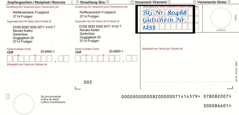 Um den Gutschein einzulösen, können Sie bei der Bezahlung der Rechnung einfach den Gutscheinbetrag abziehen und beim Zahlungszweck oder Kommentar die Gutscheinnummer erwähnen.
